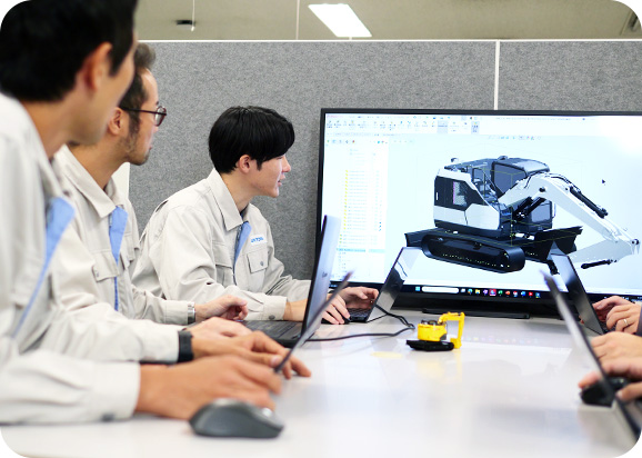 商品企画をはじめ、開発・設計、製造、品質保証、アフターサポートに至るまで、部門を越えた協働が、大きな建設機械を生み出す原動力です。