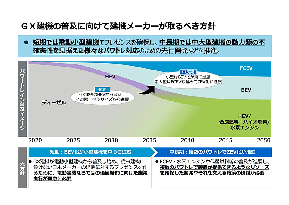 また、水素エンジンや燃料電池技術の研究を継続し、次世代建機の開発を推進します。