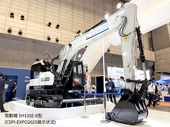 2024年度内にSH135電動機の試作機を完成させ、2025年6月のCSPI-EXPO展に出展しています。SH135電動機はエンジンを搭載した従来モデルの「作業性能」「快適性能」「安全性能」を踏襲、『カーボンニュートラル』『低騒音・低振動』を更に追及し、未来へ繋がる第一歩として開発を進めています。