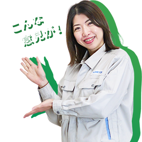 また、サービス業やIT・情報処理など、異なる業界から転職した社員も在籍。それぞれのバックグラウンドを強みに変え、多様な視点が現場に新しい価値を生み出しています。